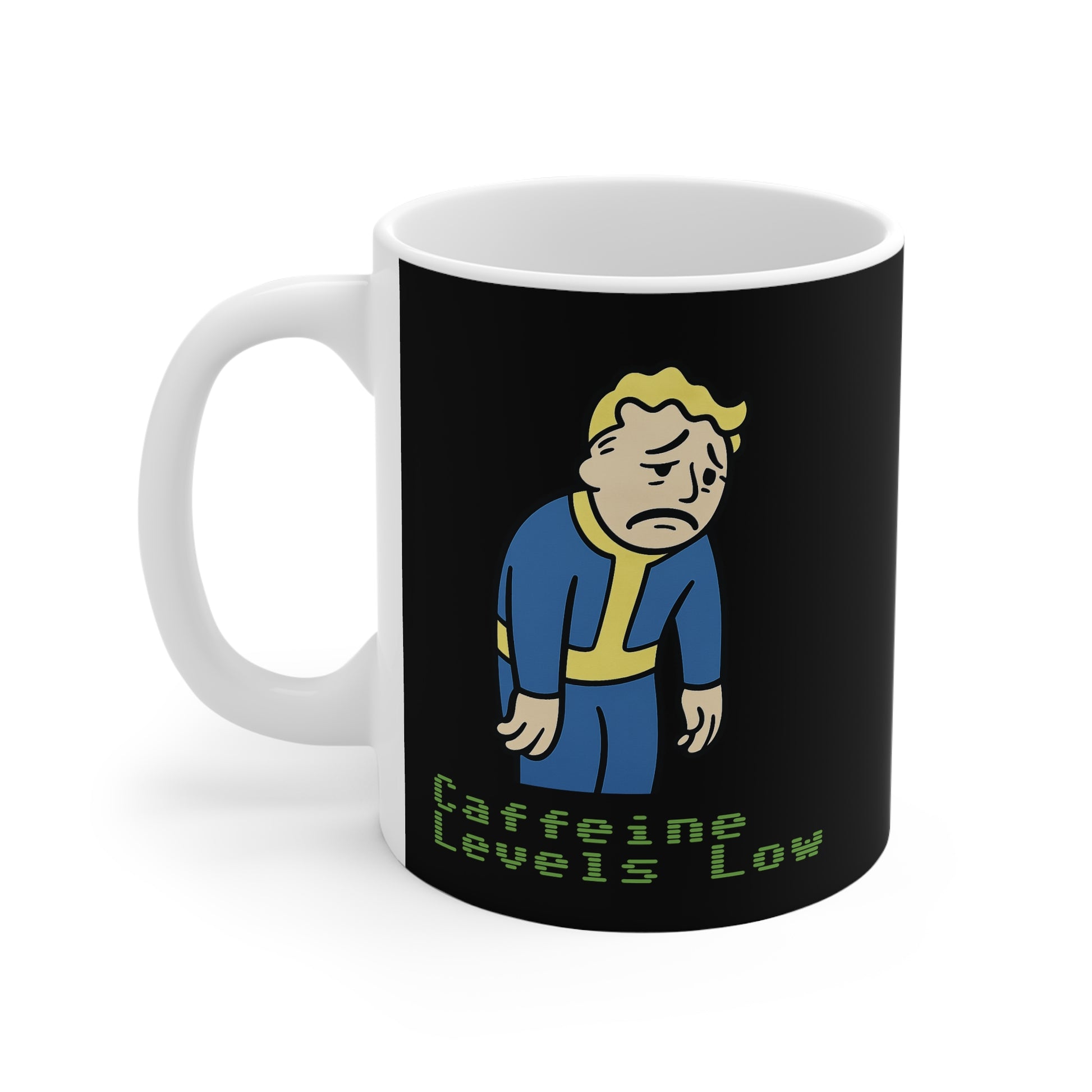 Start your day like a true Wastelander—with a strong dose of caffeine and a touch of humor. This Fallout-inspired mug features everyone's favorite Pip-Boy looking utterly exhausted, paired with the words “Caffeine Levels Low”. Whether you’re heading out on a real-life quest or just trying to survive Monday, this mug is the perfect companion.