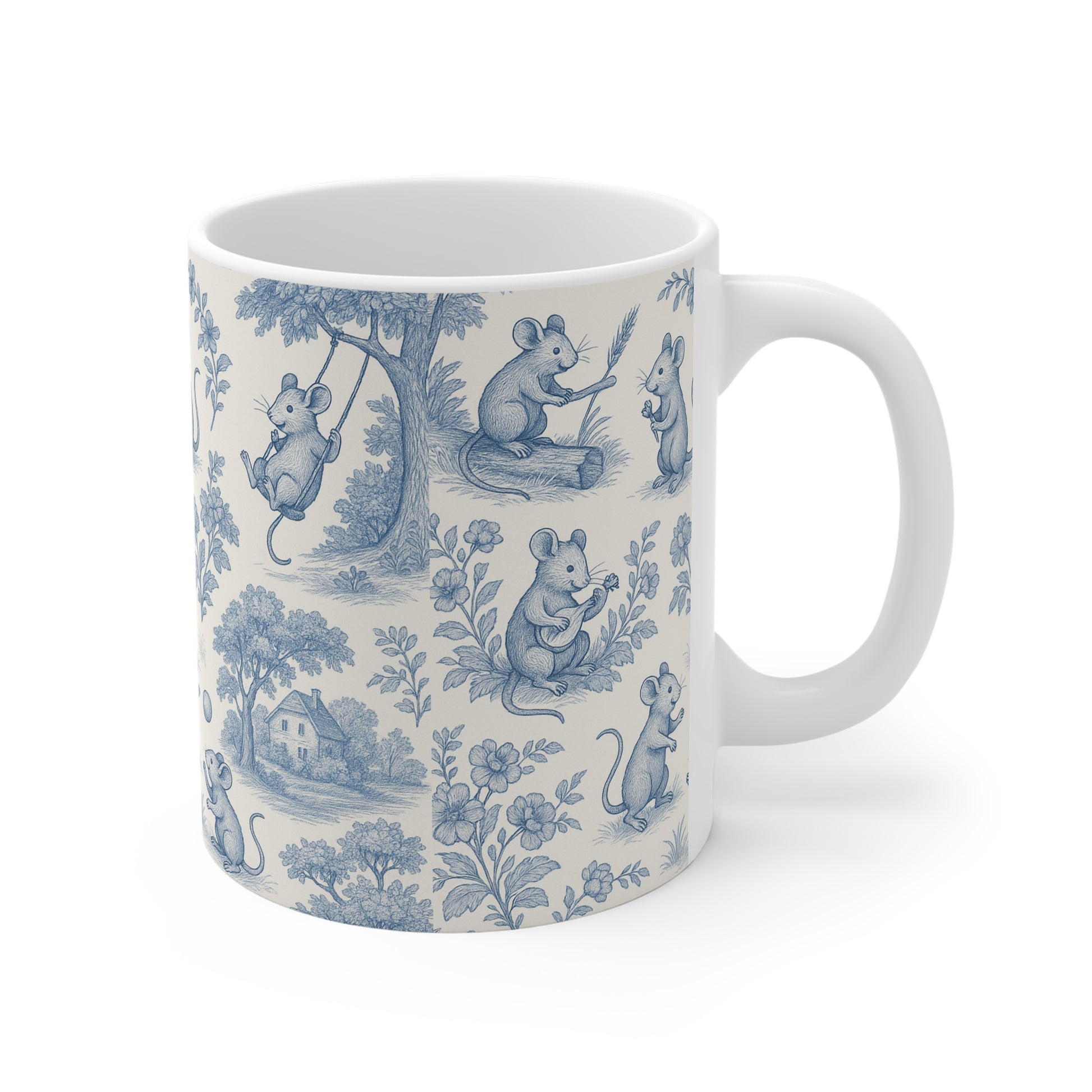 Bring a touch of charm and whimsy to your kitchen with this delightful Toile de Jouy Mice Mug. Featuring an intricate blue-and-white design of tiny mice in enchanting woodland scenes, it’s inspired by classic French textiles with a playful twist. A perfect pick for nature lovers, cottagecore enthusiasts, and anyone who has a soft spot for mice.