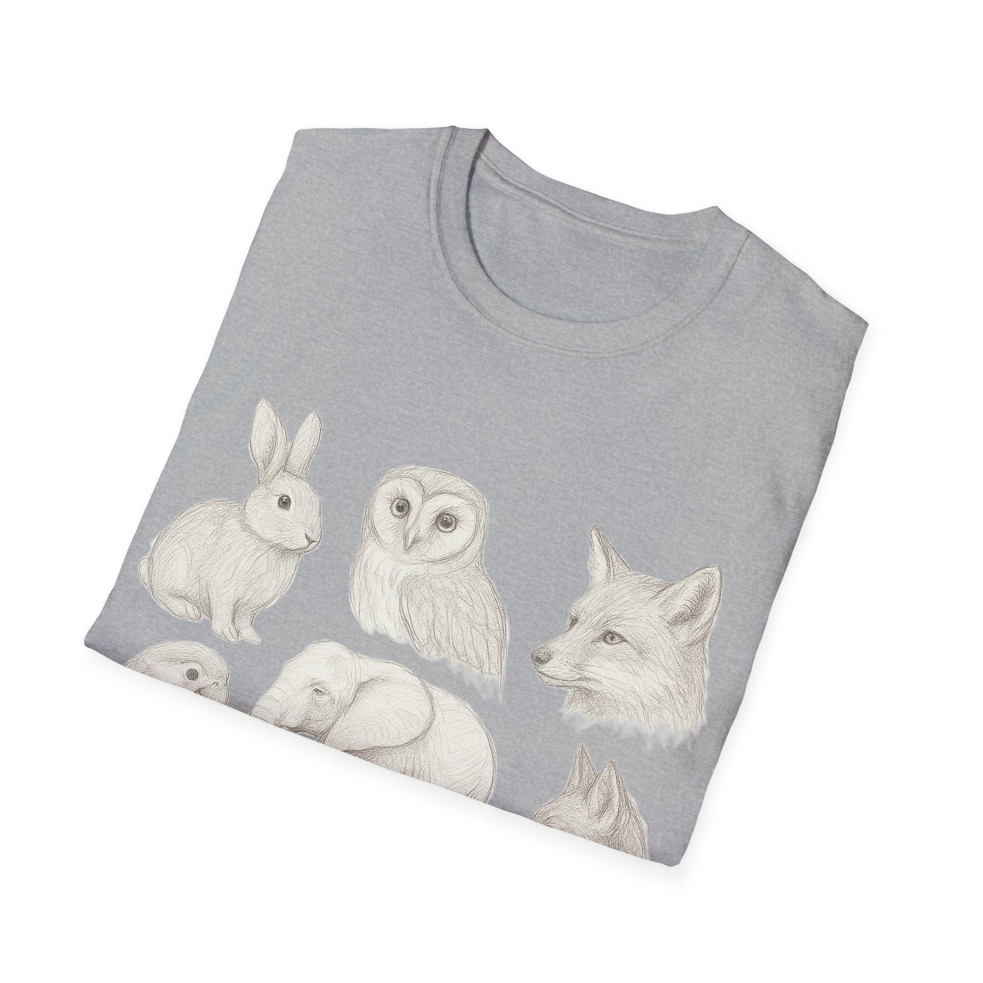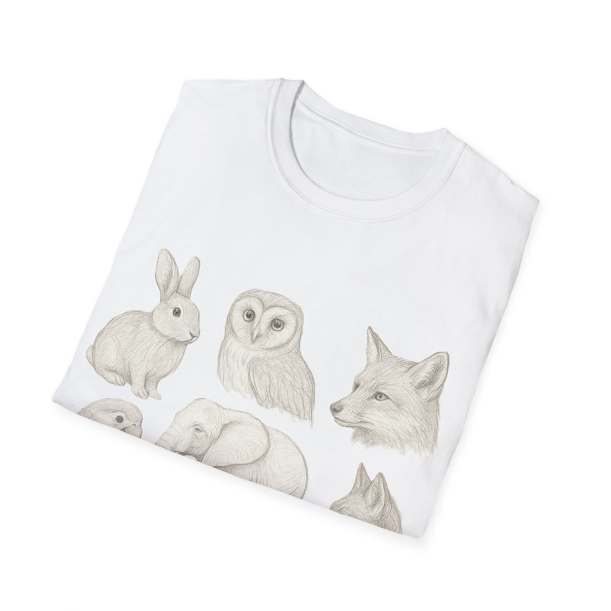 Embrace comfort, creativity, and your love for animals with this unisex softstyle t-shirt featuring a collection of adorable, hand-drawn animal illustrations. Whether you're a nature enthusiast or shopping for the perfect animal-themed gift, this tee adds a personal, playful touch to any outfit or occasion.